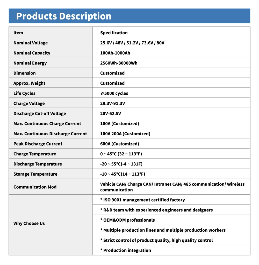 Обладая 15-летним опытом работы в отрасли, мы имеем собственную производственную базу и профессиональную команду разработчиков. Используя наши глубокие технические знания и постоянные инновации, мы создали строгую систему контроля качества, гарантирующую высокую безопасность, длительный срок службы и высокую энергоэффективность каждой батареи.